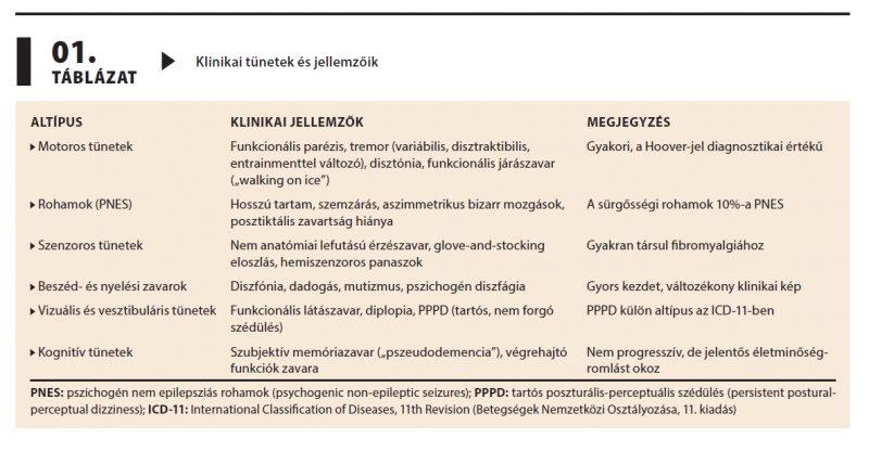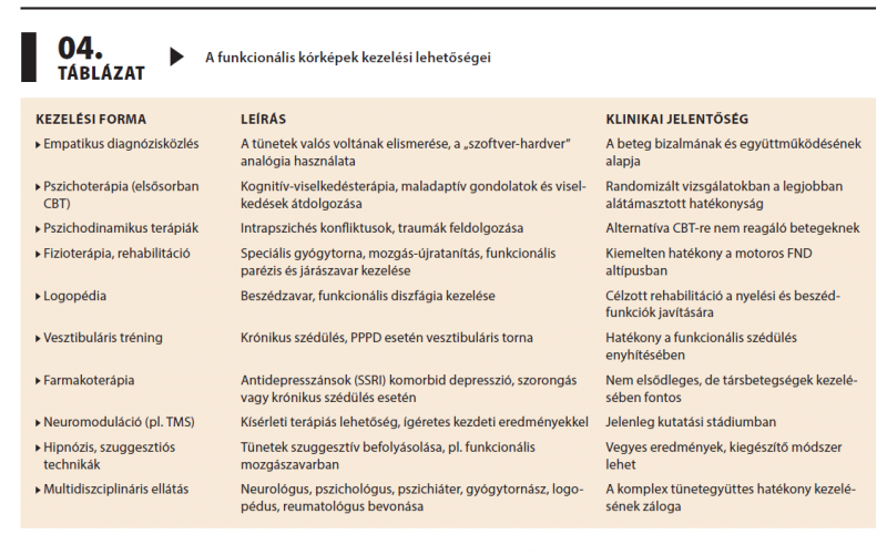 A funkcionális neurológiai rendellenesség (FND) a neurológiai gyakorlat egyik legnagyobb kihívása. Bár korábban a hisztériacsoportba vagy a pszichogén kórképek közé sorolták, ma önálló, pozitív klinikai jelek alapján diagnosztizálható betegségként tartjuk számon. Epidemiológiai adatok szerint gyakorisága a sclerosis multiplexével vagy a Parkinson-kóréval vetekszik, és jelentős egészségügyi terhet ró az ellátórendszerekre. Klinikai spektruma sokszínű, gyakran utánozza az organikus kórképeket, megnehezítve a diagnosztikáját. A patofiziológiai kutatások agyi hálózati zavarokat tártak fel, amelyek megerősítik a neurobiológiai alapot. A multidiszciplináris, empatikus diagnózisközlésen és pszichoterápiás, rehabilitációs beavatkozásokon alapuló kezelés javíthatja a prognózist és csökkentheti a társadalmi terhet.